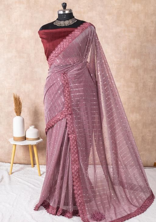 Name: SHIMMER SAREE WITH MIRROR WORK AND CHEMICAL LACE AND DIMOND HAND WORK