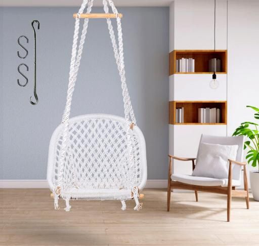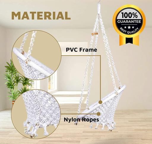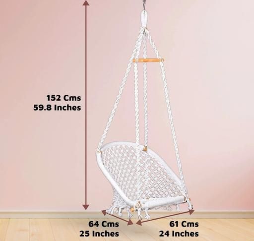 PRODUCT DESCRIPTION: Now larger space, more fun. The premium swing comes in white colour with dimensions 61 x 64 x 152 cm, weight holding capacity of 200 Kgs, Shape - D-Shape, and Material - Cotton ropes with Sturdy PVC frame. Made with 100% natural, eco-friendly, skin-friendly, and high-quality material.