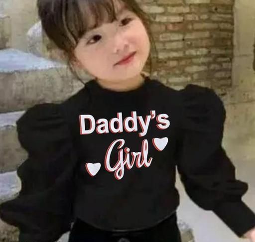 Poly Cotton Ribbed Lycra Long Puff Sleeves Round Neck Shadow Printed daddy's girls top for girls and baby girl