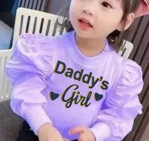 Poly Cotton Ribbed Lycra Long Puff Sleeves Round Neck Shadow Printed daddy's girls top for girls and baby girl