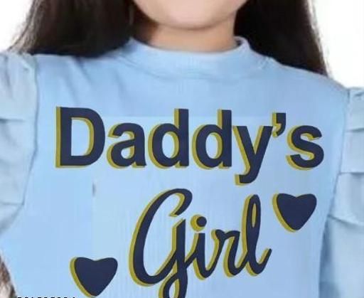 Poly Cotton Ribbed Lycra Long Puff Sleeves Round Neck Shadow Printed daddy's girls top for girls and baby girl