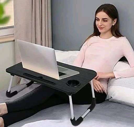 Name: Krishiv Wood Standard Multi-Purpose Laptop Table With Dock Stand/Study Table/Bed Table/Foldable And Portable/Ergonomic & Rounded Edges/Non-Slip Legs/Engineered Lapdesk With Cup Holder