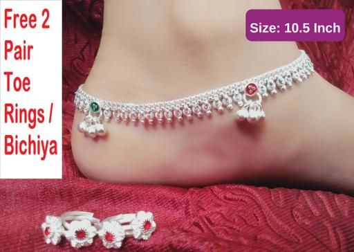 Name: pajeb kolapuri desing anklet for women and girl in 10.5 inches size.with free toe rings chutky