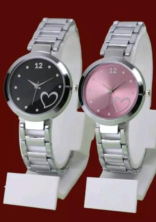 Name: Beautiful Heart Designer Round Case Dial Attractive Metal Belt Women Analog Watches for Girls(Pack OF 2)