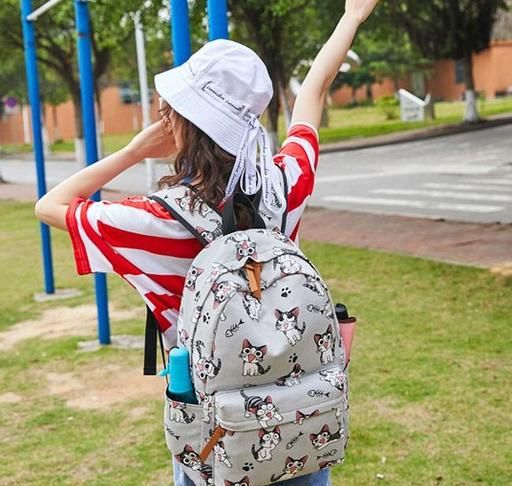 Name: Printed Backpack School/College for Girls/Women Grey Rose Print