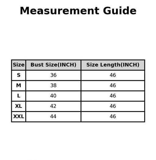 XXXL (Bust Size: 46 in, Size Length: 42 in)