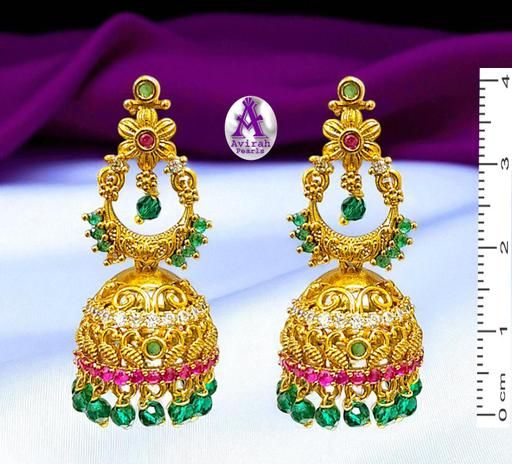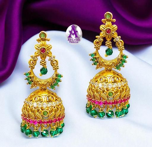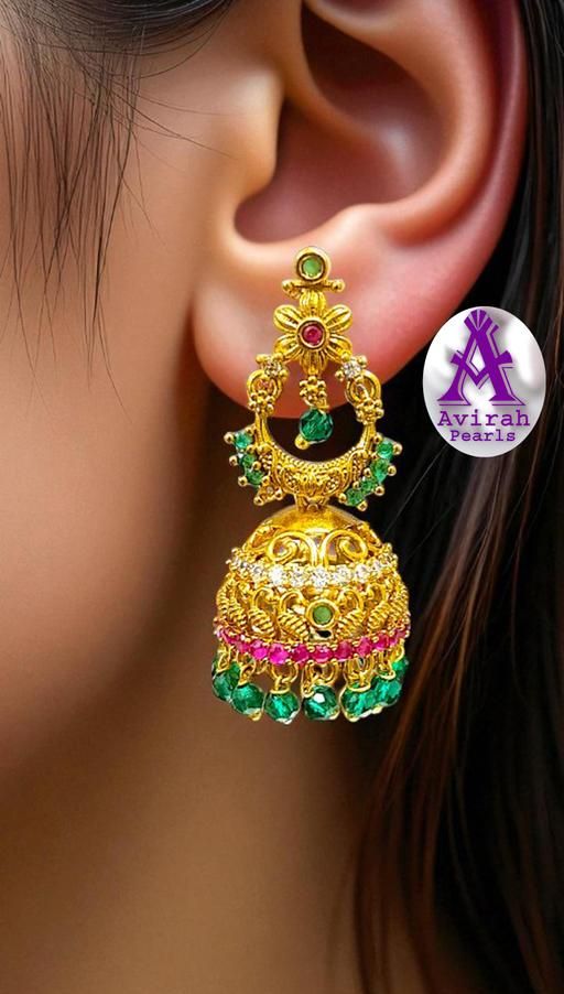 Name: Attractive Designer CZ Jhumkhas with Green Crystal Beats for Women's & Girls