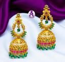 Attractive Designer CZ Jhumkhas with Green Crystal Beats for Women's & Girls
