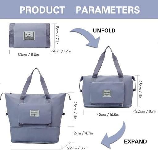 【Foldable & Expandable】The large capacity folding travel bag can be folded or expanded in three size at the bottom according to your needs. Size after the expansion: (L*W*H) 41cm*21cm*44cm (16.1in*8.26in*17.3in), Size before the expansion: (L*W*H) 41cm*21cm*32cm(16.1in*8.26in*12.59in), Folding size: (L*W*H) 28cm*4cm*18cm(11in*1.57in*7.08in).