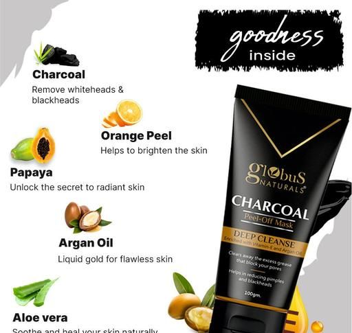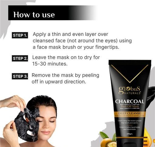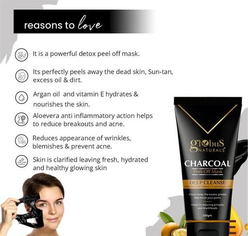 Name: Charcoal peel off mask for Blackheads & Whiteheads Removal, For Women with Oily & Acne Prone Skin, (Set of 2) 100g Product Name: Globus Naturals Charcoal peel off mask for Blackheads & Whiteheads Removal, For Women with Oily & Acne Prone Skin, (Set of 2) 100g Brand Name: GLOBUS NATURALS PVT. LTD. Brand: GLOBUS NATURALS Flavour: Charcoal Net Quantity (N): 200 Skin Type: All Skin Types Type: GEL Capacity: 100-200gm Globus Naturals Charcoal peel-off mask is a designed to provide deep cleansing and exfoliation by using activated charcoal as a main ingredient. This is good for oily skin beacuse of its ability to draw out impurities, toxins, and excess oil from the skin's surface, leaving it feeling refreshed and revitalized. Country of Origin: India