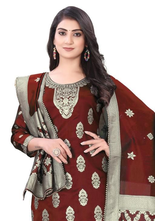 Jacquard Silk Unstitched Salwar Suit Dress Material for Women with Dupatta