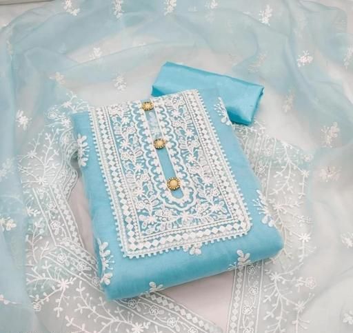 Name: Unstiched Exclusive Super Best Collections Organza Party Wear Fancy Patiala Pakistani jaipuri All Occastions Organza Suits Women's Aqua Blue Embellished Embroidered Organza Suits & Dress Materials