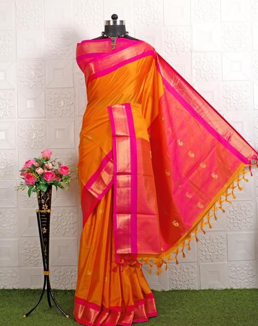 Name: Golden Zari Cotton Silk Paithani Saree Gold Pink