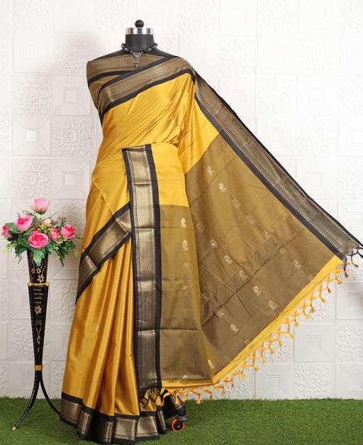 Name: Golden Zari Cotton Silk Paithani Saree Golden Black