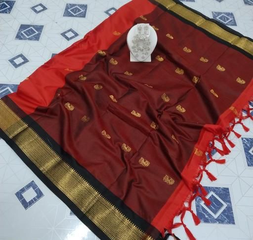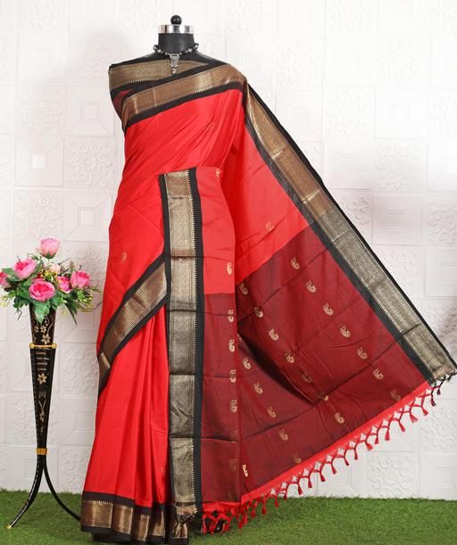 Name: Golden Zari Cotton Silk Paithani Saree Red Black