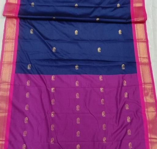 Name: Golden Zari Cotton Silk Paithani Saree Navy Red