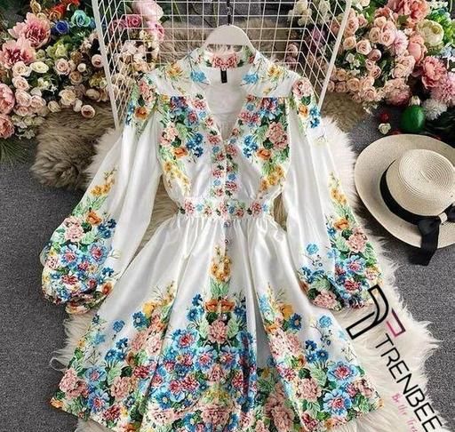 Name: Puff Sleeve Stylist Floral Printed Dresses For Women