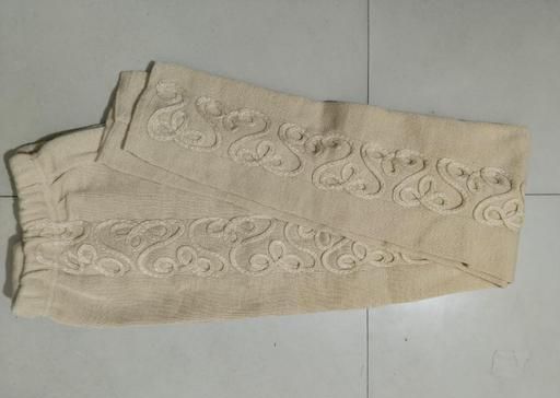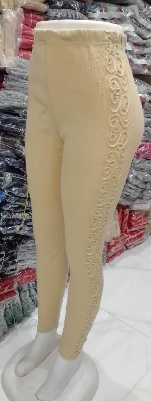 Woollen Knitted side embroidery designer legging length is 38-40 inches and can be fitted upto L size or 38 waist size.It is made of knitted wool and is very stretchable.It has beautiful embroidery on its outer side that gives it a designer look for winter wear dresses.one can team up it with kurtas tops....