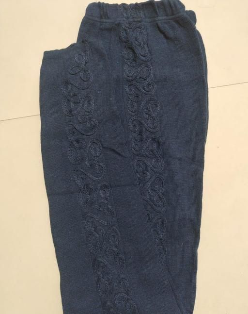 Woollen Knitted side embroidery designer legging length is 38-40 inches and can be fitted upto L size or 38 waist size.It is made of knitted wool and is very stretchable.It has beautiful embroidery on its outer side that gives it a designer look for winter wear dresses.one can team up it with kurtas tops....