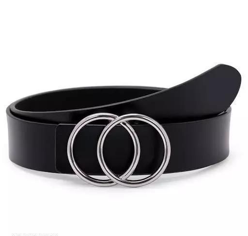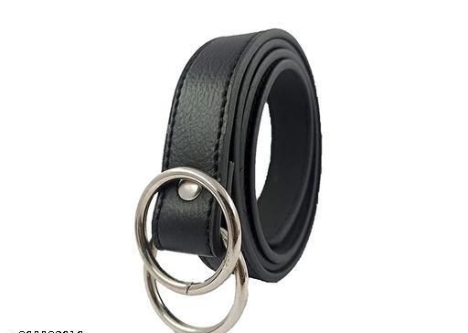 Name: Black Double Ring Faux Leather Belt For Women's & Girls | Formal & Casual Belt For Ladies | Double Ring Belt For Ladies and womens I Belt Full Length- 48 inch