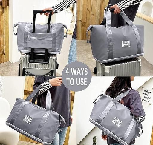 Large capacity folding travel bag made with lightweight waterproof and tear resistant Polyester fabric, solid, durable and strong enough to carry. It is enough for short trips and can easily accommodate 3-5 days of travel clothes.