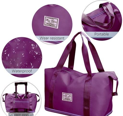 Large capacity folding travel bag made with lightweight waterproof and tear resistant Polyester fabric, solid, durable and strong enough to carry. It is enough for short trips and can easily accommodate 3-5 days of travel clothes.