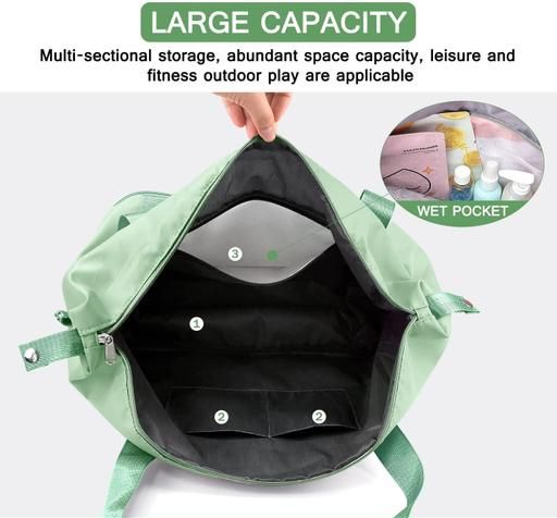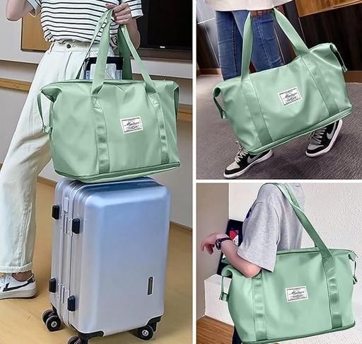 Large capacity folding travel bag made with lightweight waterproof and tear resistant Polyester fabric, solid, durable and strong enough to carry. It is enough for short trips and can easily accommodate 3-5 days of travel clothes.