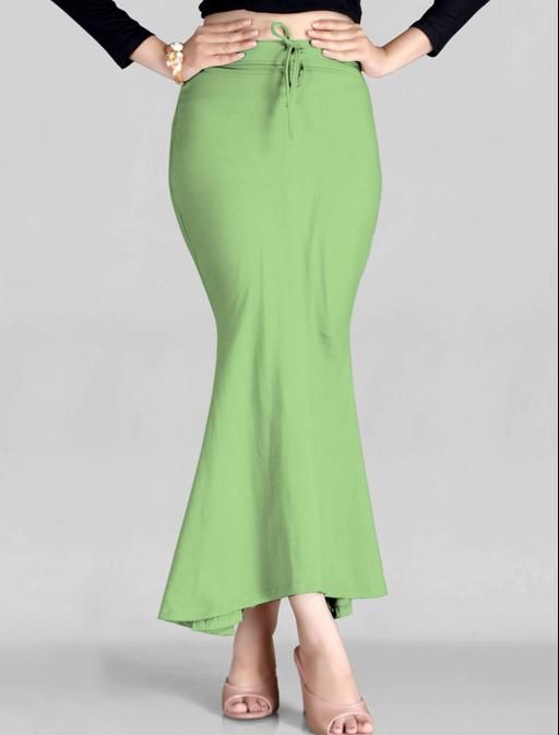 Fish cut Lycra saree shape wear gives you the right shape to flaunt your drape combined with enough to do your regular activities. II Elastic stretch and drawstrings to adjust the size based on the convenience. The Adjustable Drawstrings helps to give you the grip and hold heavy Saree without any rashes on the skin or String marks on your waist.