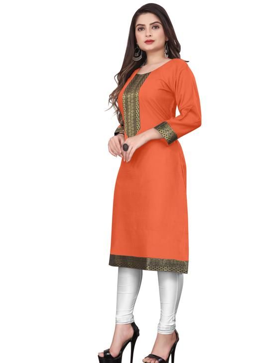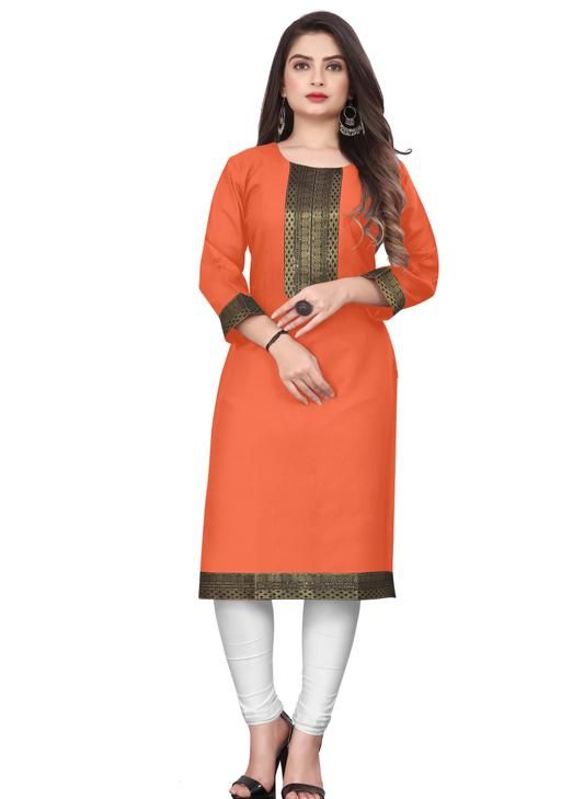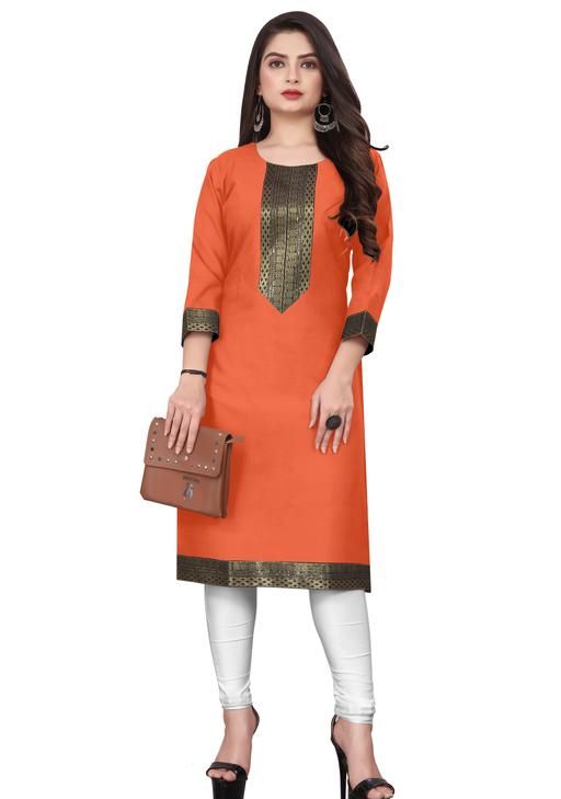 Name: Elegant Orange Zari Kurtis – Trendy & Comfortable Cotton with Embroidered Designs for Every Occasion