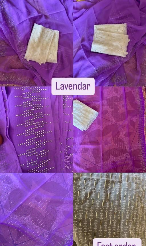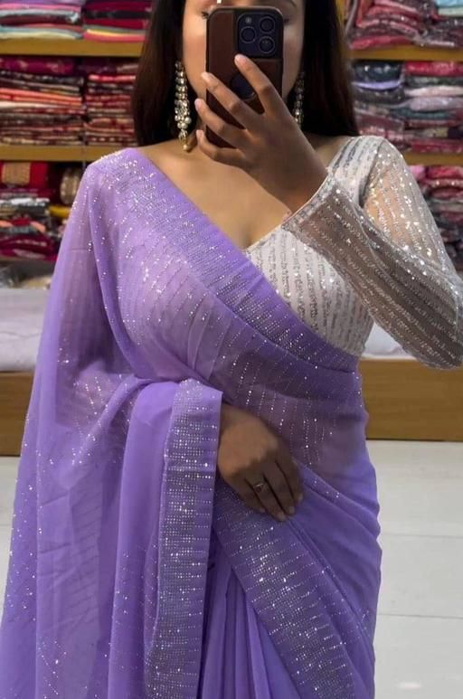 Lavendar Color Saree,Bollywood Georgette Saree,Siroski work Saree,Sequence Saree, Hotfix Diamond Saree With 1 Meter Sequence Embrodered Unstiched Blouse Piese.