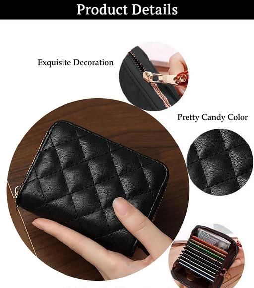 Name: Women's Card Protective Case/Card Holder 9 Slots Card Holder Small Coin Purse(Black)