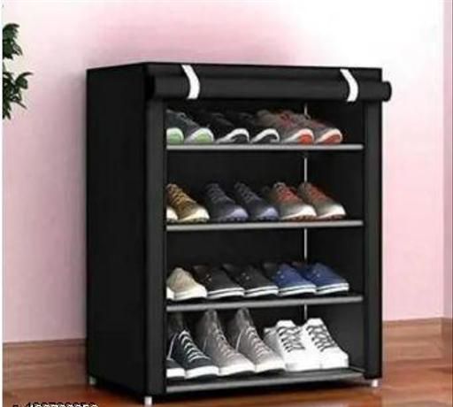 Name: Multipurpose Shoe Rack for Home | Foldable Slipper/Chappal/Footwear Stand 3 Shelves Plastic Shoe Stand | Collapsible Storage Plastic Shoe Stand Easy to Assembled (4 Shelf) (BlACK)