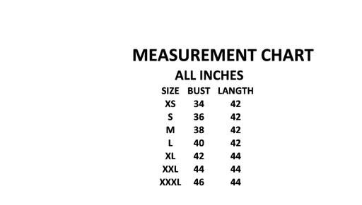XL (Bust Size: 42 in, Length Size: 46 in)