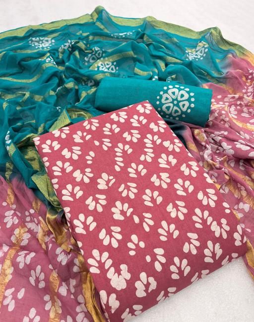 New batik collection top-2.3 mtrs, bottom - 2.1 mtrs , dupatta- 2.1 mtrs, all over hand batik with pure cotton fabric