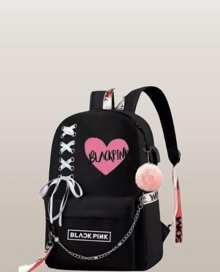 15 L Laptop Backpack BTS Design Medium College Casual Tuition Fashionable For Girls (Black)