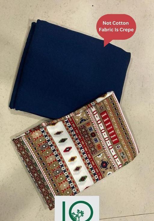 Name: Polyster/Crepe fabric-New Beautiful design Kurti Fabrics Crepe Printed Fabric 2.5 Meters +Plain Crepe 2.5 Meters plain suit,dress material combo for women,suit material 5 meter,dress material materialchuridar material combo.