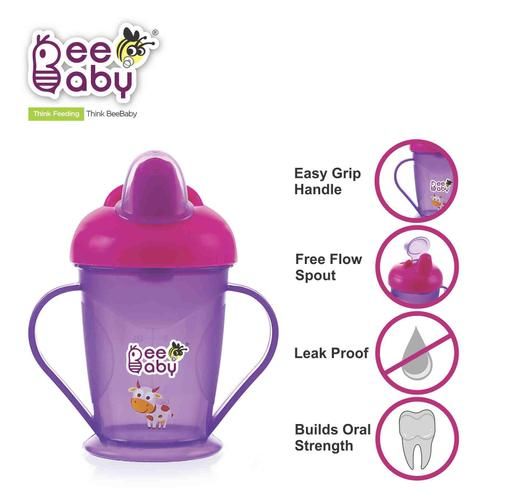 Beebaby Free Flow Twin handle Hard Spout Sippy Cup is non-spill and leakproof, preventing any unwanted spilling and mess. It is integrated with a Twin handle spout, the cover of which is dust-free. It is easy to assemble and clean. It encourages babies to drink on their own by flexing mouth muscles and developing self-feeding skills. Great For Self-Feeding