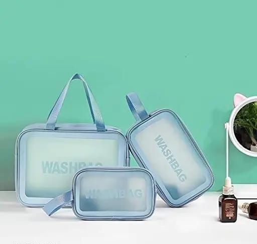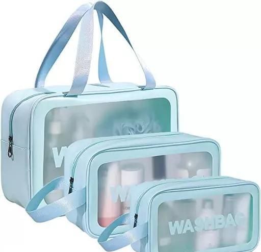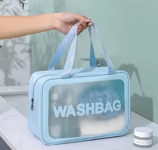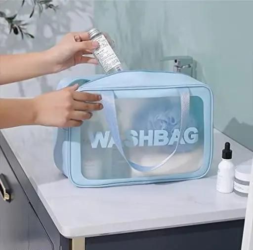Name: Clear Cosmetic Wash Bag Makeup Pouch Bag Travel Transparent Toiletry Bag Zipper Wash Bag with Handle Household Grooming Kit Portable Organizer Case Carry Pouch for Women and Men (blue) Makeup Pouches/Bags