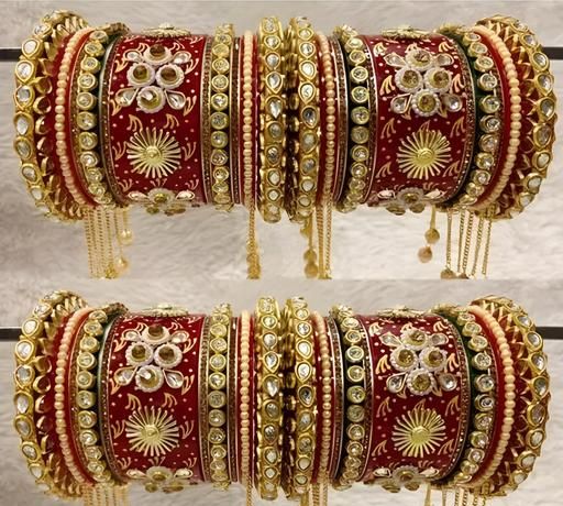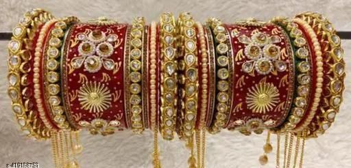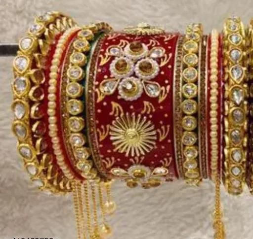Name: Stylish Red Colour Rajwadi Chooda With Latkan & Jhumki