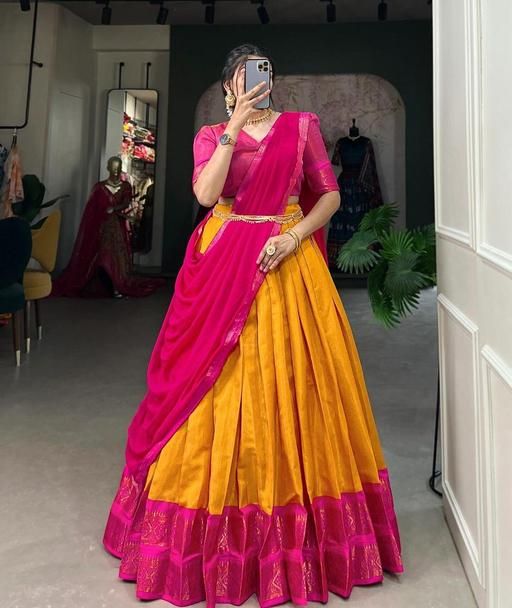 Un Stitched (Lehenga Waist Size: 70 m, Lehenga Length Size: 70 m, Duppatta Length Size: 2.4 m)