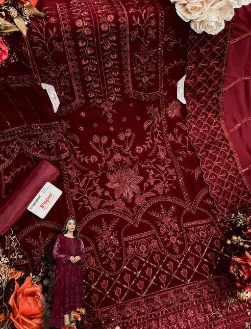 Name: Pakistani Fastival Maroon Georgette Embroidered Suit FEPIC 1529