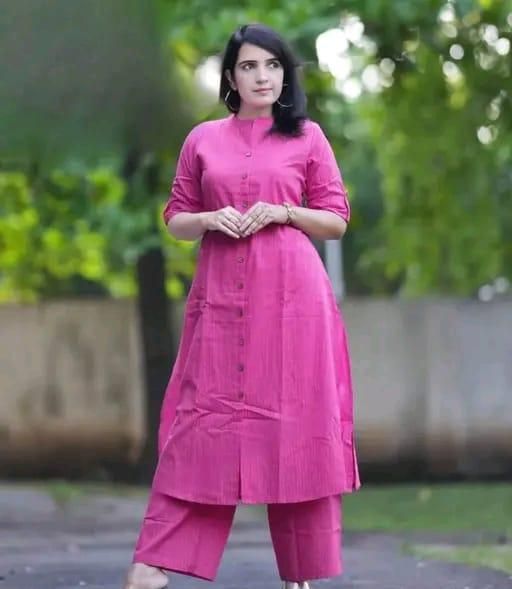 Matching Bottoms: Paired with comfortable, matching bottoms that complement the kurta perfectly, creating a cohesive and stylish ensemble.