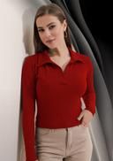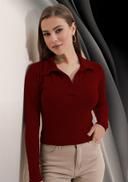 Casual Polyester Blend Ribbed Collar V-Neck & Regular Long Sleeves Stylish Maroon Top (20"Inches)