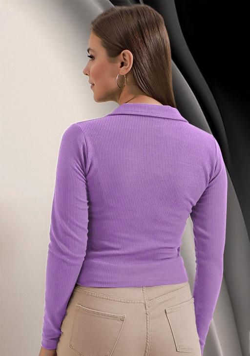 Name: Casual Polyester Blend Ribbed Collar V-Neck & Regular Long Sleeves Stylish Lavender Top (20"Inches)