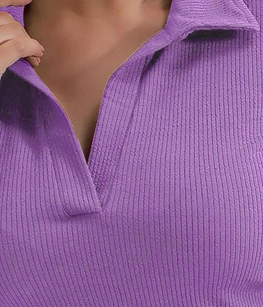Casual Polyester Blend Ribbed Collar V-Neck & Regular Long Sleeves Stylish Lavender Top (20"Inches)