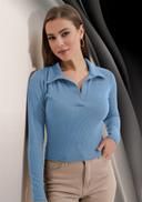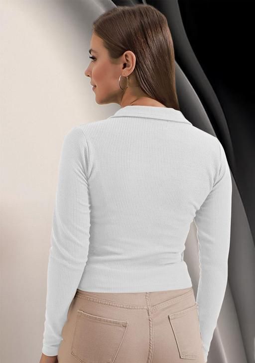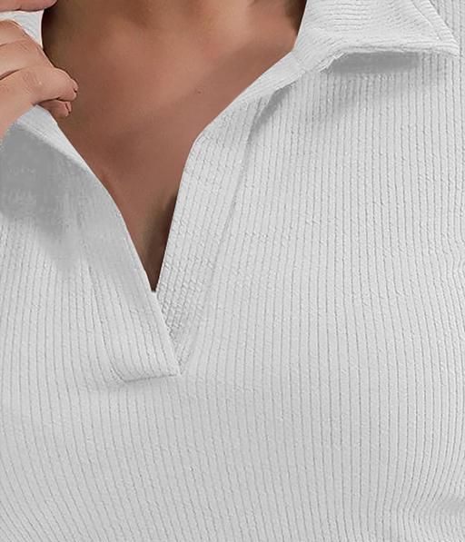 Name: Casual Polyester Blend Ribbed Collar V-Neck & Regular Long Sleeves Stylish White Top (20"Inches)
