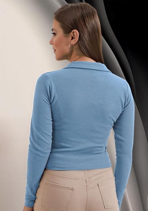 Name: Casual Polyester Blend Ribbed Collar V-Neck & Regular Long Sleeves Stylish Sky Top (20"Inches)