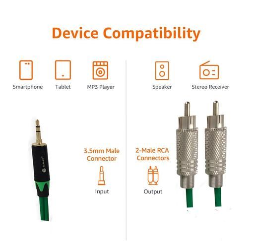 Name: RCA to 3.5mm Male Audio Cable, 3.5mm to 2RCA Cable Male RCA Cable,Y Splitter Stereo Jack Cable for Home Theater,Subwoofer, Receiver, Speakers and More (1.5 Meter)