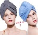 Cotton Bolls Ultra-Soft Microfiber Hair Towel – Quick-Dry & Lightweight (2-Pack)-Grey & Blue