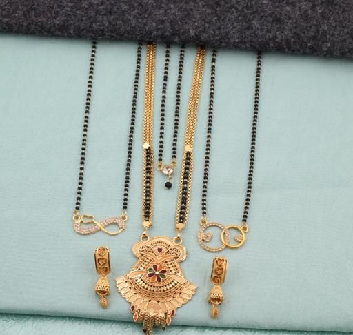 Name: Pack of 4 Gold Plated 30 and 18 Inch with 1Pair of Earring for Women Brass Mangalsutra